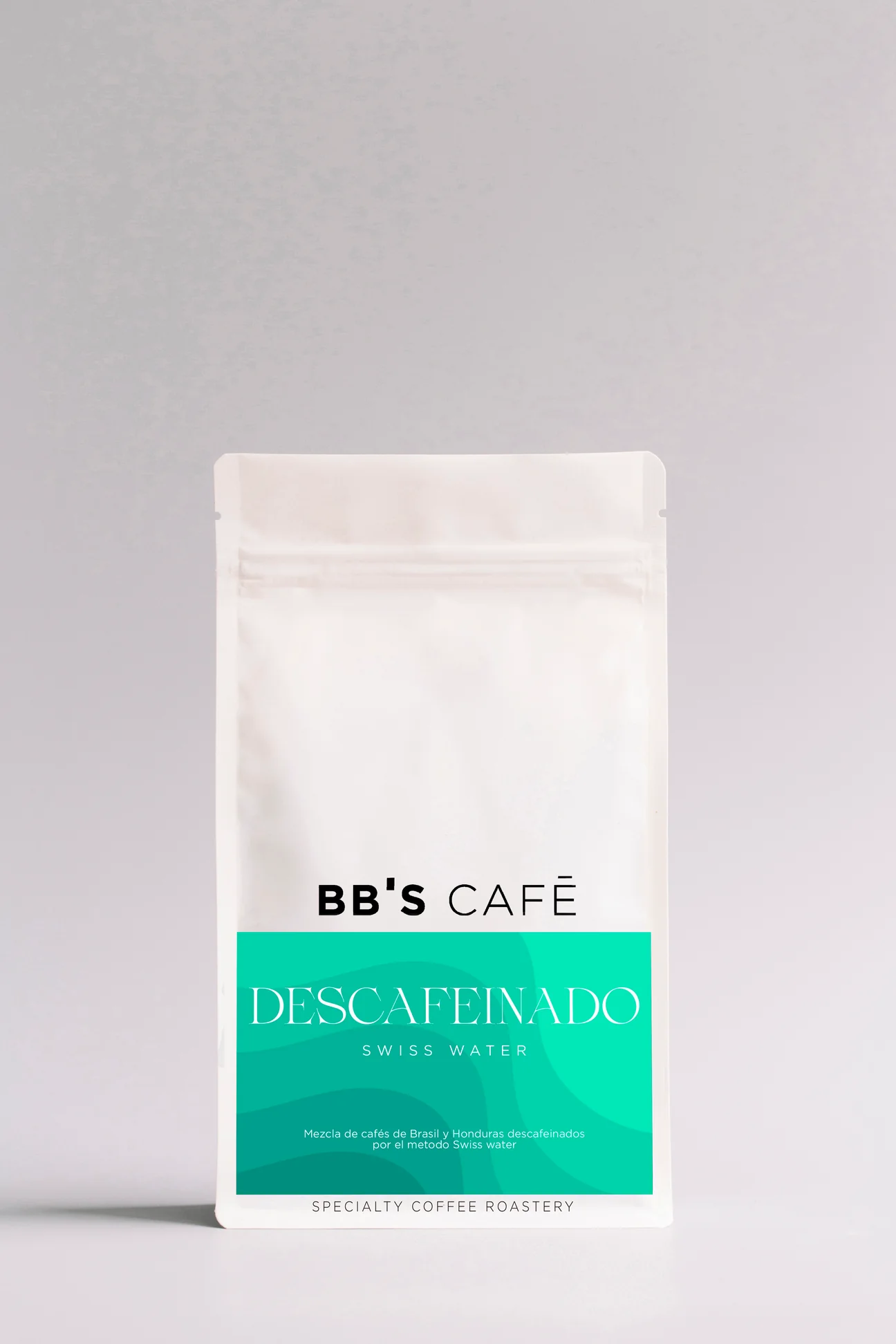 CCafé en grano descafeinado de especialidad de BBS Café. Un blend suave y equilibrado, con notas aromáticas y cuerpo medio, ideal para disfrutar del sabor del café sin cafeína en cualquier momento del día.