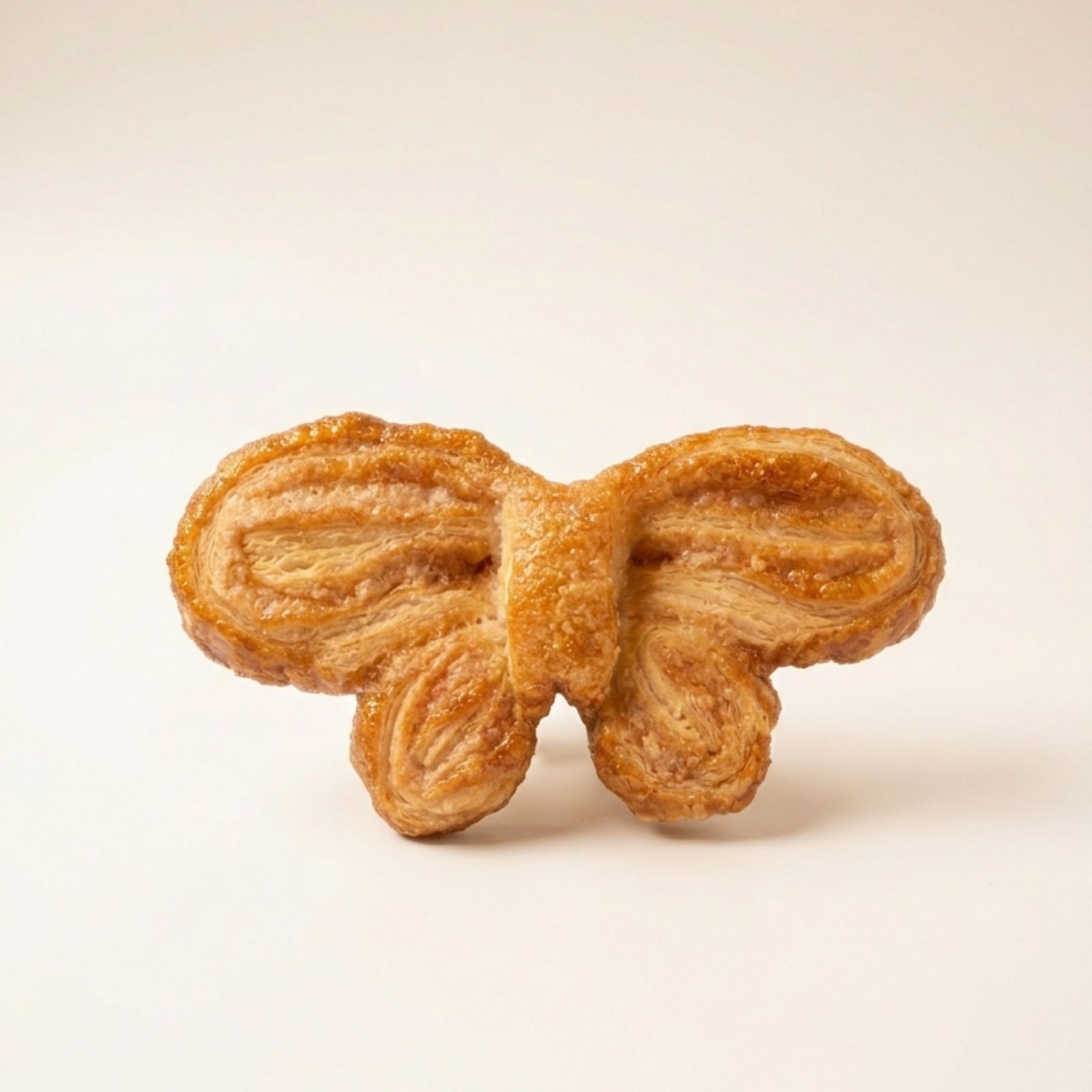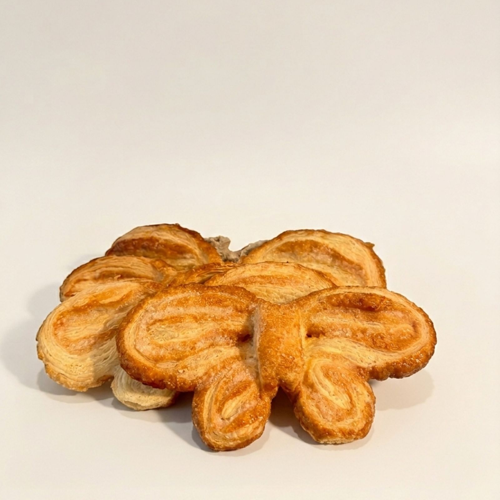 Mariposas de hojaldre artesanas elaboradas en el obrador de Papín Dulce en Logroño. Crujientes, caramelizadas y con el sabor clásico del hojaldre recién horneado.