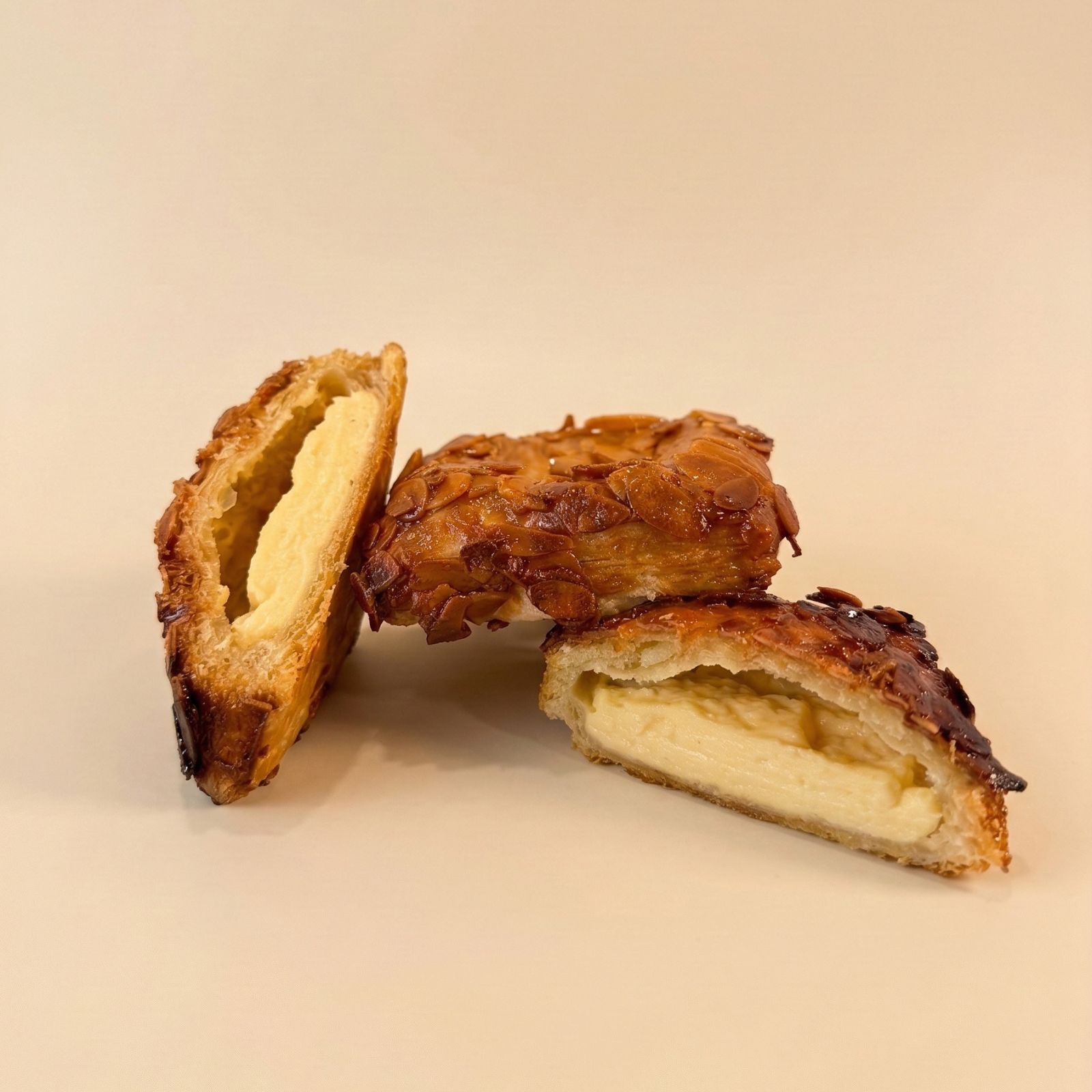 Nuestra panchineta artesana es uno de los dulces más representativos de la pastelería tradicional, elaborada con un hojaldre ligero y crujiente que envuelve un relleno generoso de crema suave.