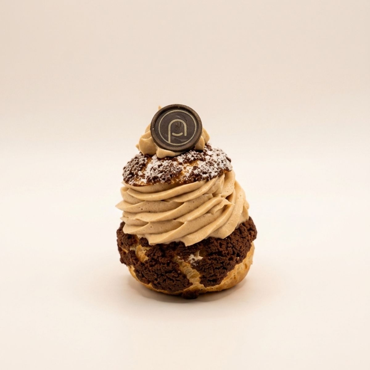 El Paris Brest en formato tarta es pura elegancia. Una base de masa choux ligera y dorada, rellena con una crema suave que equilibra cada bocado.